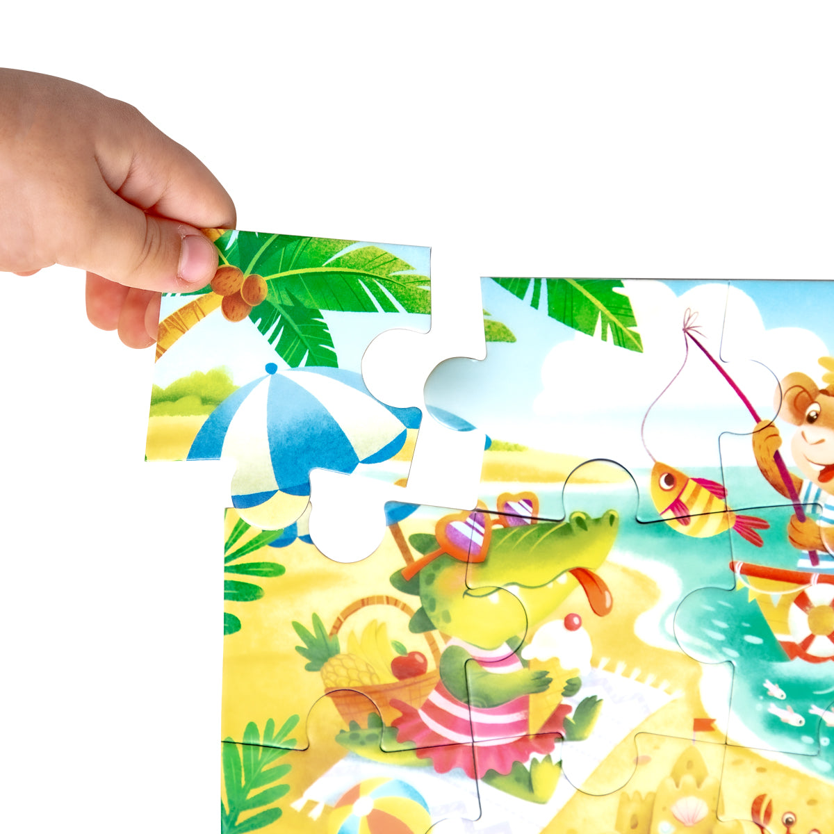 🍂❄️🌸☀️ Circle Toys 4 Mevsim Puzzle; sonbahar, kış, ilkbahar ve yaz olmak üzere dört farklı mevsimi konu alır. Her mevsimin kendine özgü güzelliklerini ve değişen doğa görünümlerini çocuklara eğlenceli bir şekilde öğretmeyi amaçlar.