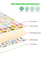 Çocuğunuz için eğlenceli, güvenli ve konforlu bir oyun alanı! Çift taraflı kullanım özelliğine sahip bu oyun halısı, iki farklı tasarımıyla çocukların oyun saatlerini daha keyifli hale getiriyor. Üstelik kolay taşınabilir yapısı ve taşıma çantası hediyesi ile her yere rahatça götürebilirsiniz!