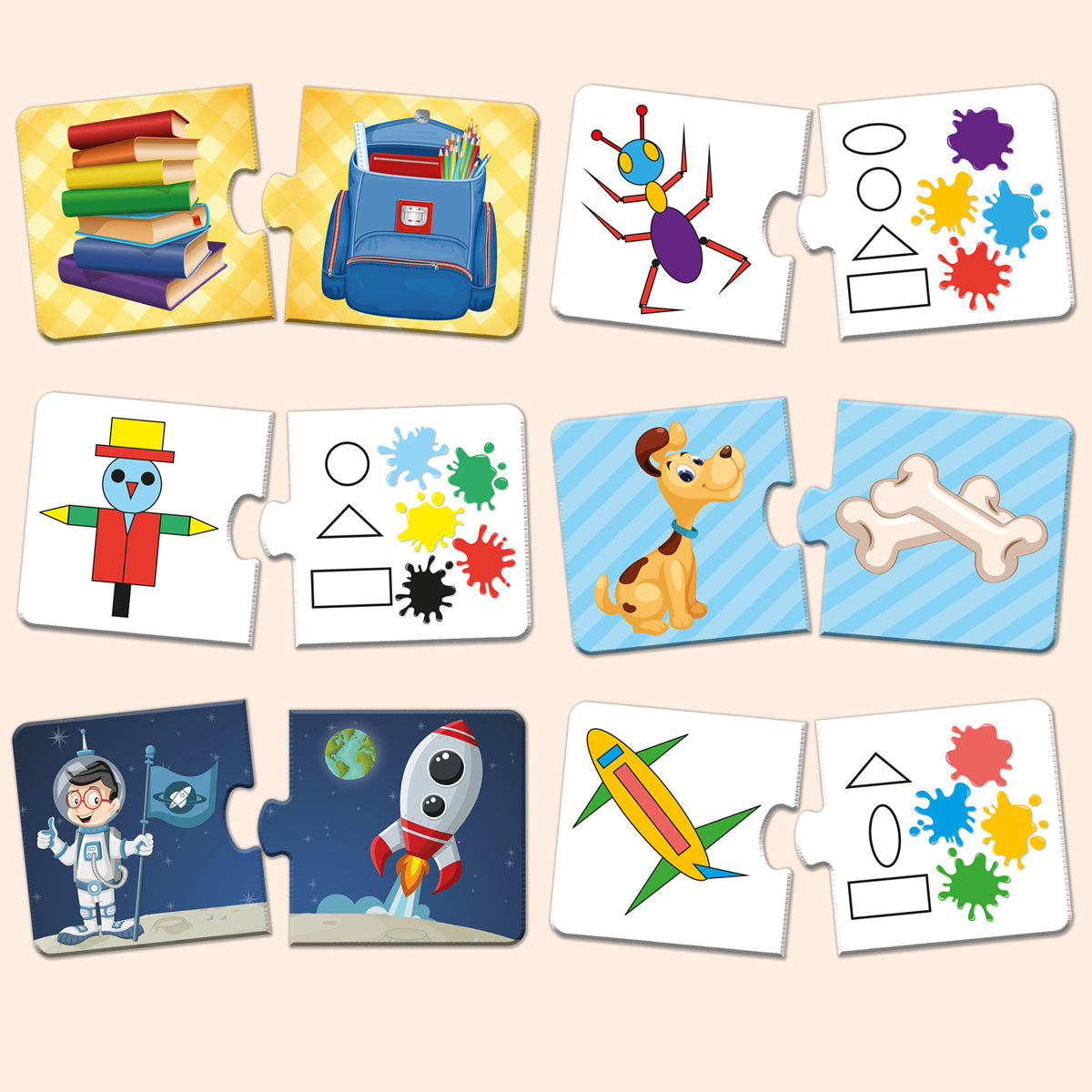 - Arka yüz: 24 adet obje kartı ve bu kartlardaki geometrik şekil ve renkler arasında bağlantı kurma oyunu.