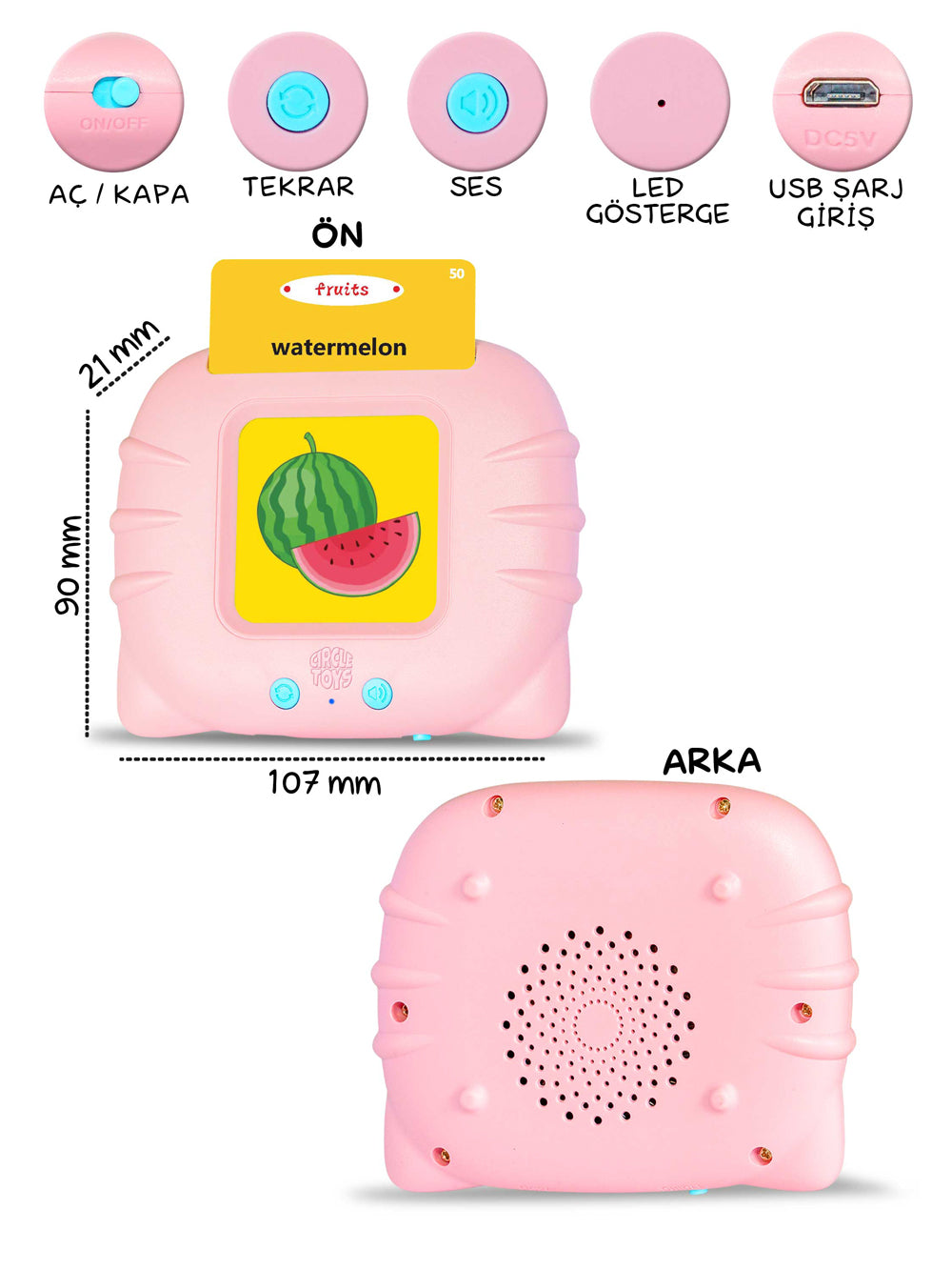 Circle Toys İngilizce Konuşan Sesli Flash Eğitim Kartları 224 Kart - Pembe