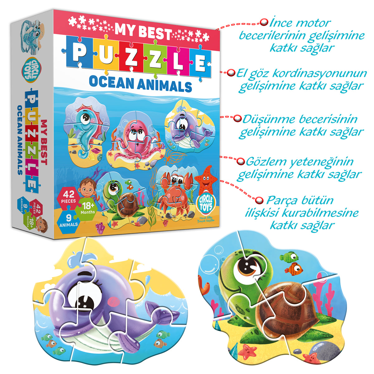 💙 Circle Toys My Best Puzzle – Ocean Animals, çocukların eğlenceli bir şekilde problem çözme, motor ve görsel becerilerini geliştirmesini sağlayan eğitici bir settir